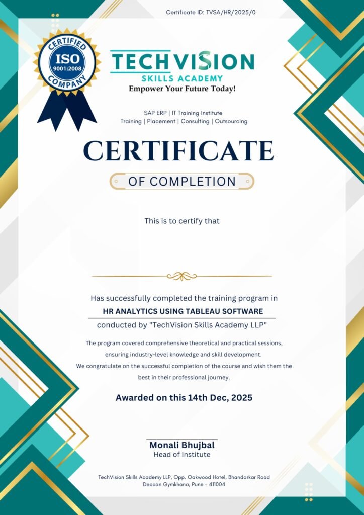 Posted on Gajanan KhandelwalTrustindex verifies that the original source of the review is Google. TechVision FICO course = practical learning + industry-ready skills.Posted on Esha NavgireTrustindex verifies that the original source of the review is Google. From basics to real-time SAP FICO, Dhiraj Sir delivers outstanding training.Posted on AKSHAY CHAVANTrustindex verifies that the original source of the review is Google. Great hands-on experience with Power BI at TechVision Skills Academy. Real datasets, clear explanations, and excellent guidance by Deepak Sir.Posted on Chaitanya WaghmodeTrustindex verifies that the original source of the review is Google. Best Power BI Training! Completed Power BI training at TechVision Skills Academy with Deepak Ghule Sir. Very clear explanations, practical dashboards, and hands-on learning. Highly recommended! 👍Posted on Shivam DeshmukhTrustindex verifies that the original source of the review is Google. Best Data Analyst Course! Learned Data Analytics at TechVision Skills Academy with Deepak Ghule Sir. Simple teaching, practical approach, and great guidance. Highly recommended! 👍Posted on Rohan ShigvanTrustindex verifies that the original source of the review is Google. Completed Data Analyst course with Dipak Sir. Very practical training with clear explanations, live examples, and real-world projects. Great support and industry-focused teaching. Highly recommendedPosted on Tushar Golkande_officialTrustindex verifies that the original source of the review is Google. Compared to other institutes, TechVision Skills Academy offers quality training at reasonable fees. Infrastructure is good, classes are interactive, and trainers ensure concepts are clear. Definitely value for moneyPosted on Sachin ChavanTrustindex verifies that the original source of the review is Google. The SAP MM course was excellent...The trainer explained every concept clearly with real-time industry examples. Practical assignments and hands-on SAP practice helped me understand Procurement, Inventory, and Purchasing modules very well. Definitely worth joining...Posted on Vedant SatputeTrustindex verifies that the original source of the review is Google. I always heard Salesforce is trending, but TechVision showed me why. Thank you Anant Sir for step-by-step guidance.Posted on Kaushal MasareTrustindex verifies that the original source of the review is Google. I understood cloud concepts like EC2, S3, and VPC practically. Thankful to TechVision Skills Academy for this opportunity.